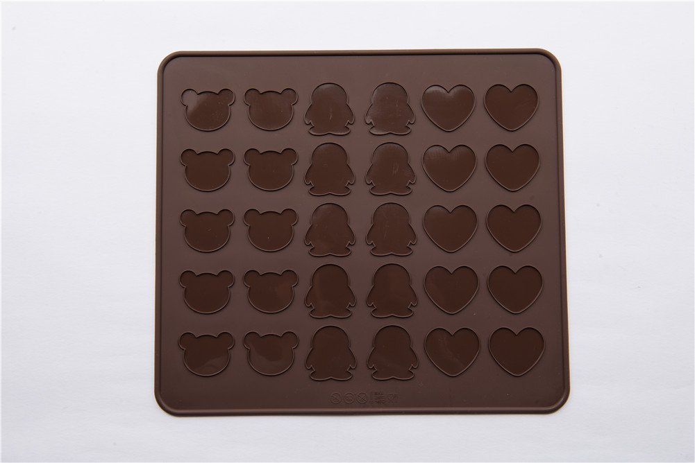 • The 30 Cavity Food Grade Silicone Macaron Baking Mat for Microwave Oven Kitty Heart Penguin Shape is a
