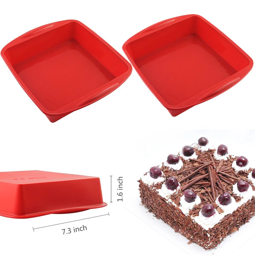 • The 2 PCS Set - AYAMAYA 7.3 inch Silicone Square Cake Pan Nonstick Loaf Baking Pan is a