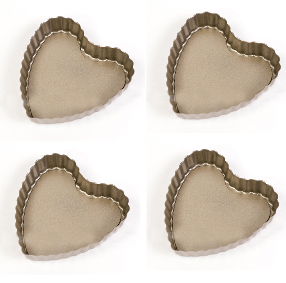 patent pending design allows bakers of any skill level to create a fillable hole into their favorite confectioneries! Just fill the pan with batter or dough and snap the Cuplette to the pan. Toss in the oven and get ready! In just a few minutes, you'll have a Cuplettes Creation with a fillable hole! Save room for more! Cuplettes are so much more than great cupcake making silicone bakeware! You can also use Cuplettes to create savory snacks and meals! By mixing and matching foods, the possibilities are endless with Cuplettes.the Misula Mini Size 4 inch Removable Bottom Carbon Steel Wave Heart Shaped Cake Pan Baking Mold Muffin Tins Mold as Baking Pastry Pan, Set of 4 A timeless collection of classic designs, our heavyweight formed bakeware fits into every budget while delivering reliable baking results time after time. 10-Year Warranty.This professional weight formed metal bakeware is a wonderful addition to any kitchen. Non-stick coated, it allows for easy-release and effortless clean up. Designed for cheesecakes and other desserts the smooth locking mechanism and tight seal make this pan simple to use. Reliable and long lasting. 10 cup capacity.Misula Mini Size 4 inch Removable Bottom Carbon Steel Wave Heart Shaped Cake Pan Baking Mold Muffin Tins Mold as Baking Pastry Pan, Set of 4 is best for youFeatures: 1. Name: Mini Hear Shape Tart Pan 2. Size: 10*10cm 3. Hiehgt: 2cm 4. Color: golden 5. Material: Heavy carbon steel 6. Resistance Temperature: +230C/448F 7. Weight: 69g/ 1 pcs 8. High quality tart pan with a removerable bottom, applicable for many other bakery product as cupcake mold, biscuit muffin tins. Package includes: 4 x Mini bake pans