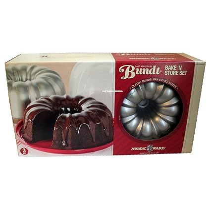 • The Nordic Ware Cast Aluminum Bundt Bake and Store 3pc Set is a