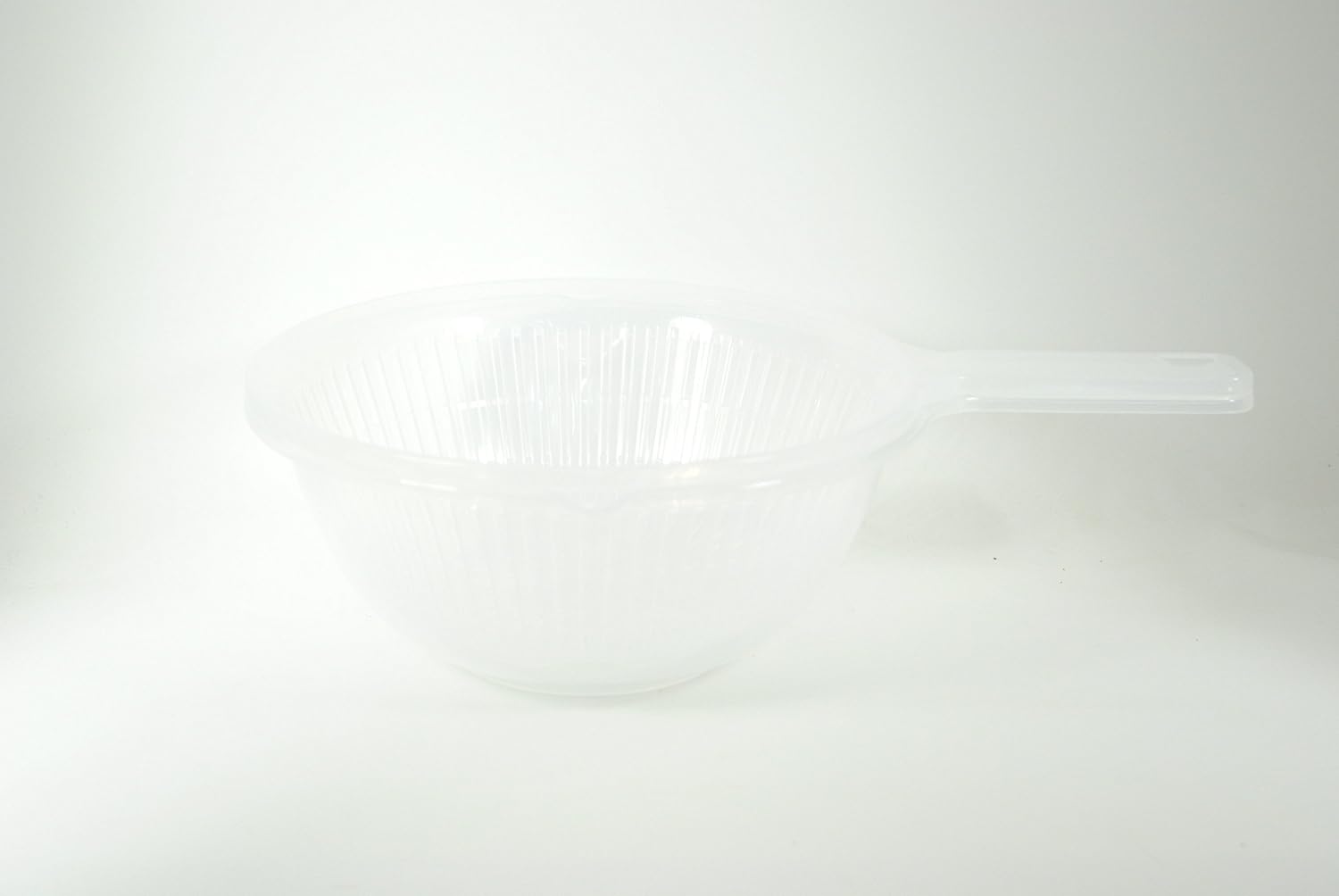 Plastic Washing Bowl with Colander with Handle Set (Clear) is best for youColor:Clear Product Dimension:(br) Bowl and strainer with handle 8.27 inch(br) Capacity 0.39 gal or 1.5 liters(br) Strainer: 7.40 Width x 11.3 Length x 3.15 Height in inch(br) Bowl: 8.27 Width x 11.5 Length x 3.23 Height in inch(br)