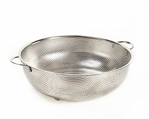 Super 7.5 Quart Superior-Drainage Stainless Steel Colander Big Enough to Feed the Whole Family and Still Capture Every Grain of Rice is best for youLarge, sturdy, and multi-functional, the Super 7.5 Quart Stainless Steel Colander is constructed with 100% stainless steel, micro-perforated holes that are strategically designed for superior drainage while keeping even the smallest grains of cooked rice from seeping through. This contemporary large colander is bigger than most; the over 7.5 Qt size is large enough for your big family’s annual summer picnic or the Thanksgiving holiday get together. Now you can enjoy all of those mouth-watering home cooked meals without the fear of overflowing or spilled food. Use this colander with handles for all of your traditional baking recipes; whether you’re sifting flour for the perfect homemade cake recipe or sprinkling powdered sugar atop the Christmas cookies, this sleek multi-purpose colander will work like a charm. Thanks to the open bottom, raised construction, the Super 7.5 Quart Colander makes it ideal for pouring boiling water directly into the opening and letting the delicious food drain while preserving all the aromatic flavors and preventing it from coming in direct contact with the sink. With this modern colander you can ensure that your freshly washed bag of blueberries won’t go bad. Cleaning and storing is convenient — the Super 7.5 Quart Colander comes with two easy grip handles and anything from large bowls to pots and pans can fit right inside — eliminating clutter and saving extra space. Backed by Amazon’s A-Z 100% money-back guarantee, the Super 7.5 Quart Colander is a must have cooking utensil for any family who needs a high-quality strainer that can be used in a number of ways in the kitchen. This sleekly designed colander is an indispensable item in the kitchen and will come in handy in nearly every cooking occasion. Now you can cook those large traditional family meals and prepare your grandma’s special recipes all with one reliable, easy to use colander.
