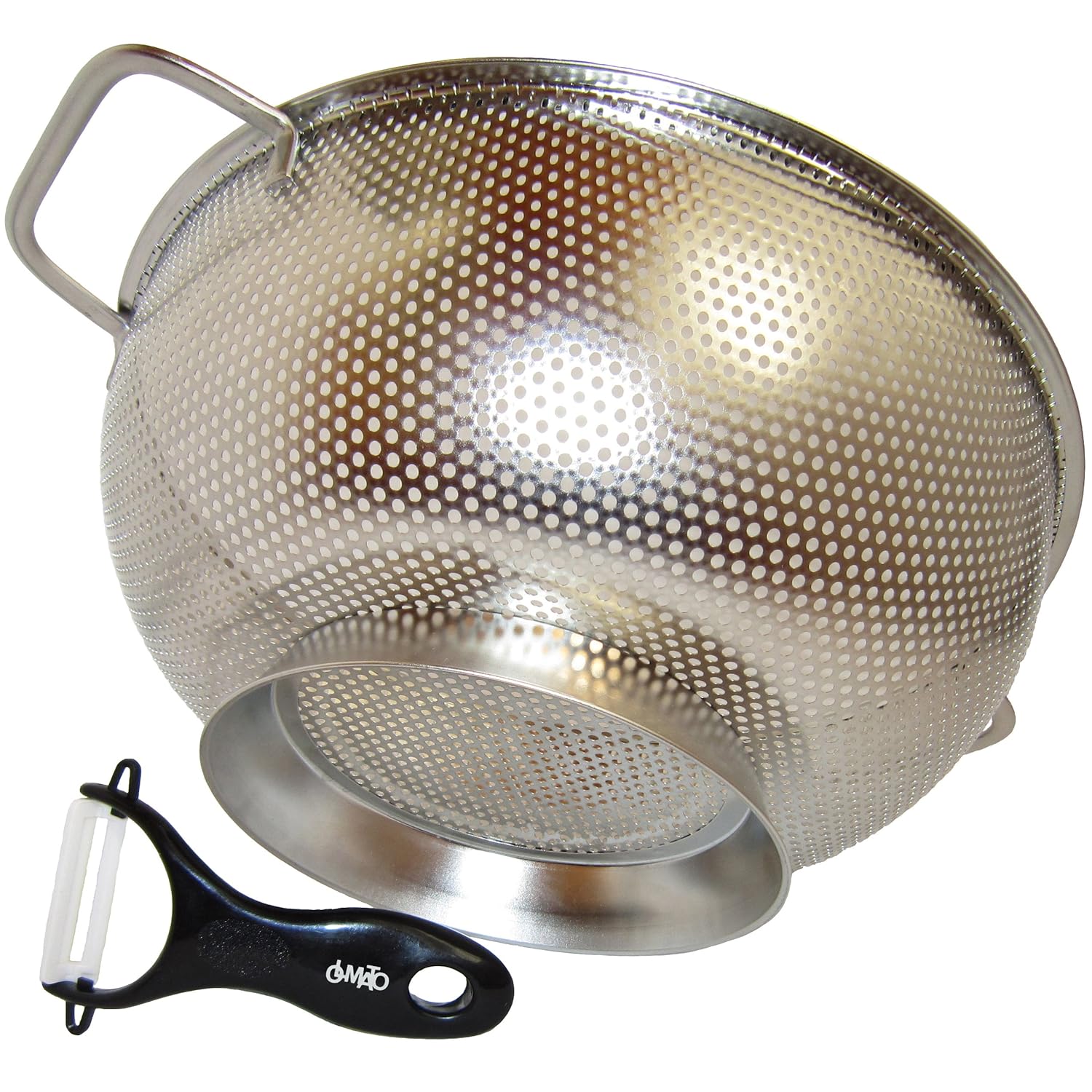 Olmato Stainless Steel Micro Perforated Colander With Handles 5-Quart, Best Metal Mesh Strainer For Pasta, Rice, Noodles, Orzo, Fresh Fruits And Vegetables With Ceramic Peeler is best for youYour Search For The Most Efficient Stainless Steel Colander Is Finally Over! No slow or incompletely draining water. No more watching your spaghetti or rice slip through the holes. No worries about warping, scratching, rusting or tipping over. Whether you're boiling pasta, steaming vegetables or washing fruit, the Olmato Stainless Steel Colander simply makes your life easier.Why This Is The Best Metal Colander: - It is made of the highest quality Stainless Steel that will never rust and will always provide a hygienic water draining! - Features special diameter holes that ensure a fast drainage without allowing for small pieces of food to pass through - Great for washing rice with minimal loss! - Our kitchen colander has holes from the bottom to the top, guaranteeing a fast water draining no matter what you put in! - The Olmato metal colander also features a sturdy ring base that will provide greater stability compared to strainers with just 3 legs that fall constantly into the sink hole! - This stainless steel strainer is dishwasher safe and can be cleaned hassle free manually because it is made of a steel sheet without using any metal wires! - Holds up to 5 quart of food or vegetables and can be used as a container or plate for your countertop! - Manufactured using FDA approved food grade stainless steel.Buying Olmato colander you get Ceramic fruit & vegetable peeler. Ceramic peeler surface is bright and clean, not easy to absorb food particles, easy to clean, always protect the true colors, Peel Potato, Carrot, Apple, Pear, Cucumber and More. The pursuit of quality of life of people, has been in use. Scroll Up & Click Add To Cart Now, While This Unbeatable Price Still Exists!