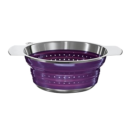 Rosle 16123 8in. Collapsible Colander Purple is best for youThis high quality Rosle foldable colander saves on valuable kitchen space, simply expand to use, then collapse to storeThe colander has two handles that allow it to be rested on top of a pan or bowlThe colander bowl, rim and handles are made from stainless steel. The sides of the colander bowl are made from purple, flexible, folding siliconeBowl measures 20cm diameter. Overall measurements: 28cm wide including handles. 8.5cm deep when expanded, 3cm deep when collapsedHanging loop for easy storageTop shelf dishwasher safe5 Year Warranty