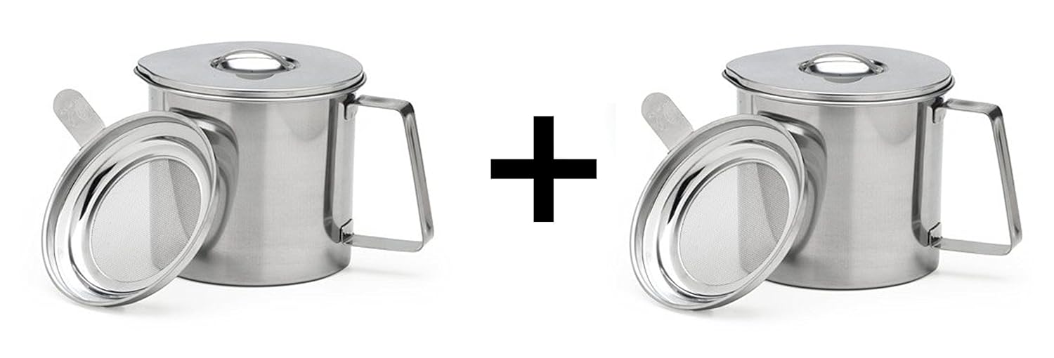 RSVP Stainless Steel 4 Cup Grease Keeper Fryers Friend Oil Strainer (2-Pack) is best for youDon't waste that bacon grease, use it again! This invaluable Fryer's Friend Grease Keeper lets you reuse fat and oils while keeping it free from particles left in your last frying batch. Stainless steel pitcher holds up to 4 cups and features a fine mesh strainer on top and spout so you pour out only just the right amount of desired grease for frying. You can even reheat solidified contents right on your stove. Easy to hold handle. Lid included..