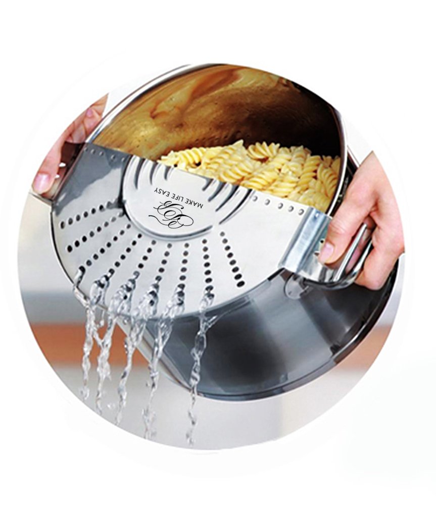 TB Make Life Easy Pot Top Strainer - Stainless Steel Sieve, Smart Design Colander Lid Prevents Hot Water Spills On User is best for youJoin the age of minimalistic ergonomic designs with the TB Make Life Easy Pot Top Strainer! No more bulky colanders filling up half of your kitchen shelves! Click the “Add to Cart” Button now and strain safely with ease and in style.
