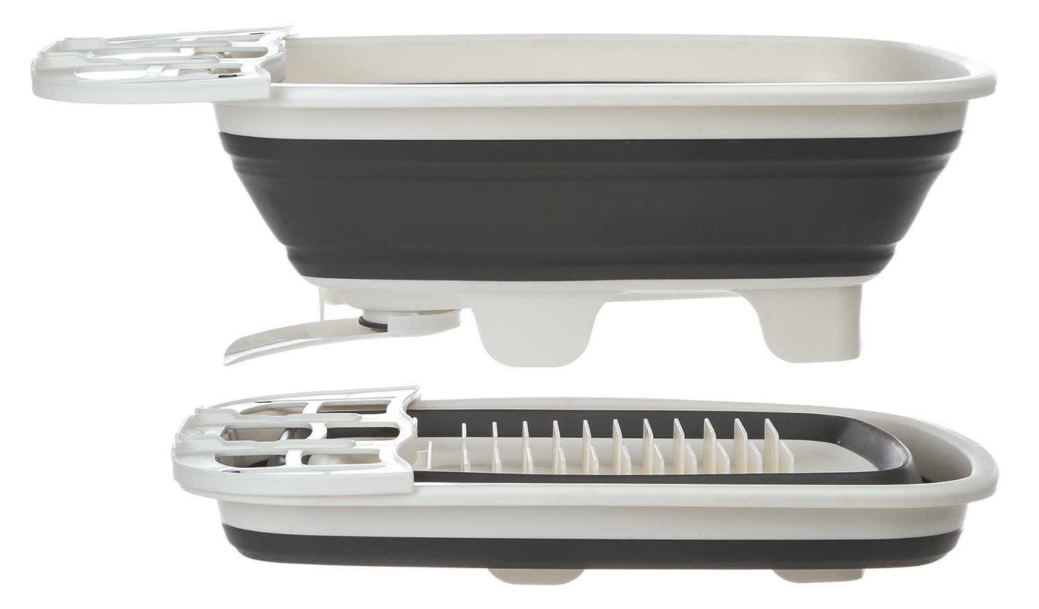 Prep Solutions by Progressive Swivel Spout Collapsible Dish Drainer is best for youThe unique Prep Solutions by Progressive Swivel Spout Collapsible Dish Drainer spout adjusts 90 Degree for use on the long or short direction on your countertop, eliminating the need for an extra drain board. The built in utensil rack slides out to hold 2 stemmed wine glasses. The dish drainer collapses and the spout rotates under the drainer for easy storage. The Prep Solutions by Progressive Swivel Spout Collapsible Dish Drainer measures 18'L x 14.5'W x 6'H and is dishwasher safe. Progressive International is your source for the widest range of functional, inventive and fun kitchen tools and great ideas put into practice. Our in-house designers spend hours in the kitchen coming up with ways to improve on a variety of traditional tasks and tools. Established in 1973, our commitment to quality and service allows us to offer a broad selection of quality kitchenware and other household products.