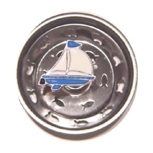 Enamel Kitchen Strainer Sailboat is best for youThis cute sink strainer fits most kitchen sinks. Add a touch of whimsy to your kitchen… and a smile to your face when you're doing the dishes. Colored strainer designs are enamel over lead-free pewter. Designed and made in USA by a small Mother/Daughter business (strainer basket component is imported). Some designs may extend above the base of your sink when raised to drain water;therefore you should use a little extra care when placing heavy pans in the sink. These make much appreciated gifts.