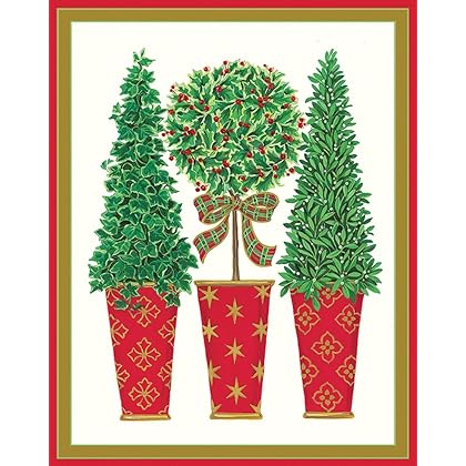 Entertaining with Caspari Three Topiaries Christmas Cards (Box of 16) is best for youEntertaining with Caspari three topiaries Christmas cards, box of 16 are thoughtfully designed and printed on high quality paper. Celebrate and share the joy of the season with Caspari's beautiful Christmas cards. Printed in Switzerland and boxed in the USA, the cards are printed on FSC certified paper. Synchronize your holiday look with our coordinating tissues, wrapping paper and gift tags. Caspari - bringing beauty, style and convenience into your home every day.