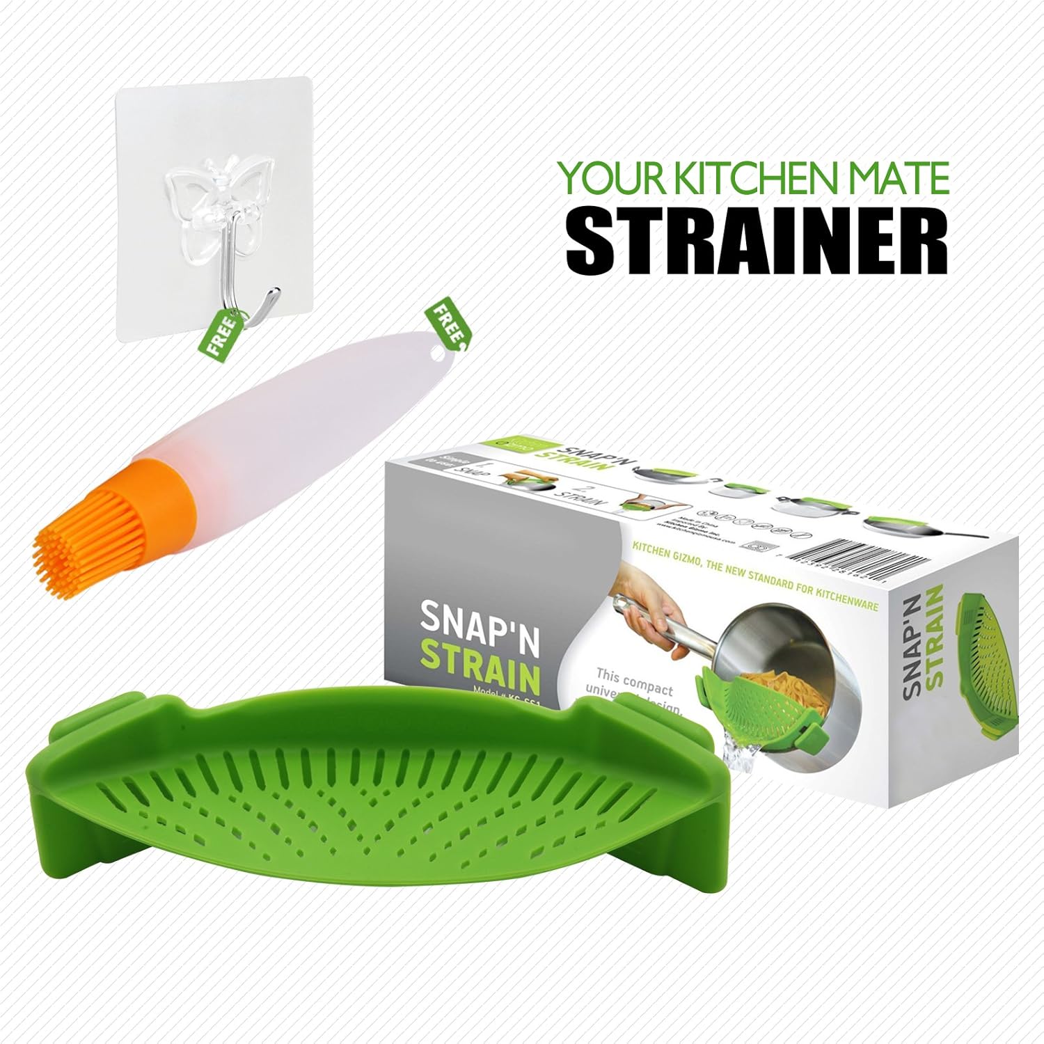 WARES360-Snap and Strain Kitchen Strain Strainer, Clip-on Silicone Strainer, Pasta Strainer, Draining Excess Liquid , Replace Colander , Fits for Most Pan or Pots, Heat-resistance up to 230℃ is best for youHave you ever burned your fingers or hands from steam, oil or boiling water etc? Are you tired of using traditional colander? Do you want to free your hands? Say goodbye to your colander from now! You’ll love the snap and strainer!Draining food is a necessary and daily cooking task, but it's fiddly and potentially dangerous trying to pour boiling water from a saucepan through a colander into another pot. Colanders are bulky to store, and just draining some pasta creates a lot of washing-up with the colander and additional bowl needed.Our universal Snap and Strain strainer is made of durable, lightweight silicone which won't melt or burn, and is strong enough to cope with a lot of weight, so heavy potatoes are no problem. Use it to drain pasta, vegetables and even grease!Once you order it, you’ll get:a) Gift Package b) Bonus BBQ baster c) Bonus hook for easy organization d) Fast delivery e) Hassle refund service f) Excellent after-sale service Click Add to Cart at the top of the page to buy it now! Don't forget to buy more for your friends!