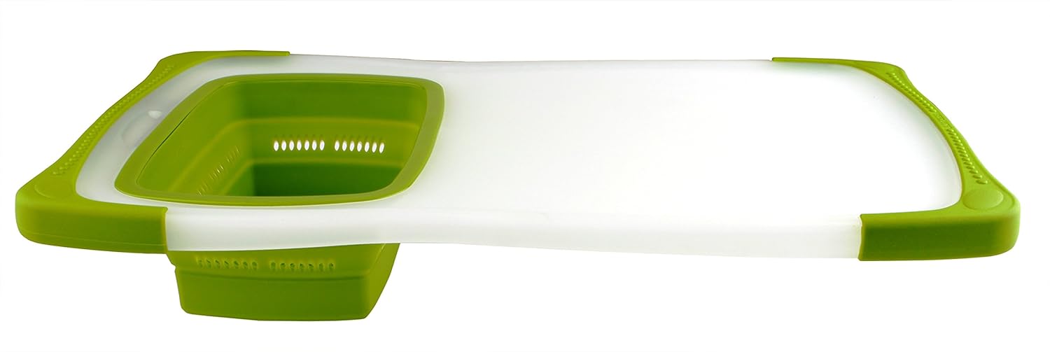 Dexas Over The Sink Contour Grippboard, 11.5 x 20", Natural/Green is best for youThe Over-The-Sink Contour Grip board from Dexas features non-slip rubber edges that grip surfaces to keep the board securely in place during use. Raised edged direct juices toward center. The grip board also features a 6-cup silicone strainer that is removable and collapsible for easy storage. Perfect for cleaning and chopping fruits and vegetables! When removed, the basket can be used separately as a colander. The grip board is non-porous and dishwasher safe. Board measures 11.5' x 20'.
