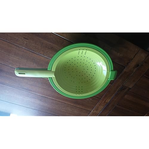Tupperware DOUBLE COLANDER Strainer 2 QT Green by Tupperware is best for youTupperware Double Colander in 'Lettuce Leaf' Green and 'Margarita' Green2 Quart (2 L) CapacityCan be used separately or togetherSturdy stay-cool handle features a tabbed lid for safetyFeet keep colander steady and stable in the sink
