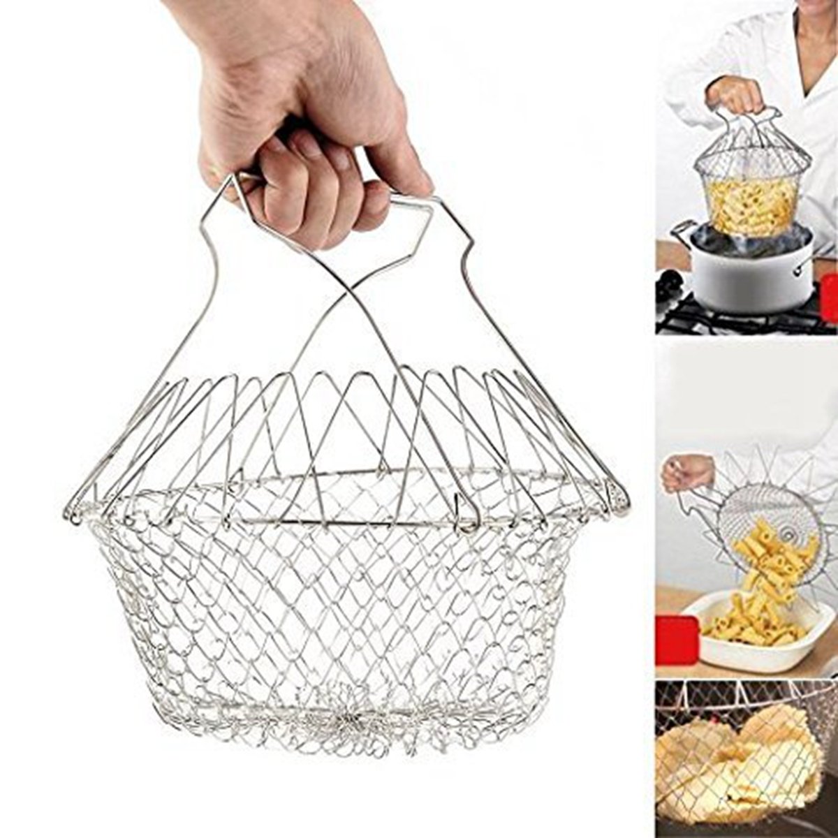 Pinovk New Foldable Stainless Steel Steam Rinse Strain Fry Cooking Chef Basket Mesh Net Strainer Colander Kitchen Tool best Colanders & Food Strainers