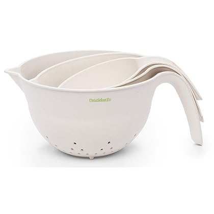 Bamboozle 3-Piece Bamboo Utility Bowl and Colander Set is best for youUtilizing a revolutionary process, bamboo fibers are ground into a fine material that is molded into products that are stylish and safe for the earth. The responsibly made unique bamboo blend our collections are made from is... SUSTAINABLE Uses excess raw materials of fast-growing, eco-friendly bamboo that can be harvested frequently without damaging the soil or landscape. DURABLE Extremely strong, moisture resistant, heat tolerant, and dishwasher safe. Made to sustain everyday use and tough enough to be enjoyed for years. REPURPOSED machines are retooled to mold a new responsible material into beautiful, durable, eco-chic plates, bowls, trays, and kitchen tools. BIODEGRADABLE When you are ready to move on, the material breaks down cleanly, returning to the earth, leaving very little environmental impact.