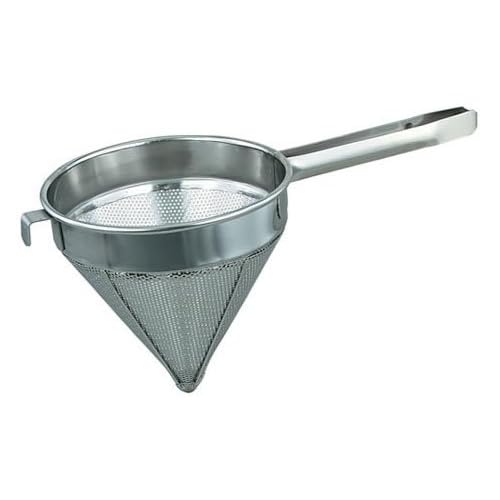 Browne (S5012F) 12" Fine Steel China Cap is best for youThis fine steel china cap comes with perforated metal body. The perforated metal is made from stainless steel. An excellent choice for both restaurant and home use this strainer makes sure that unwanted seeds spices or particles do not slip though. Perfect for straining broths soups sauces and can be used to powder dust pastries. This fine steel china cap is made with quality and is ready for long-term kitchen use. It is an essential tool for any kitchen. This 6-3/4-quart cap measures 12-inch in diameter.