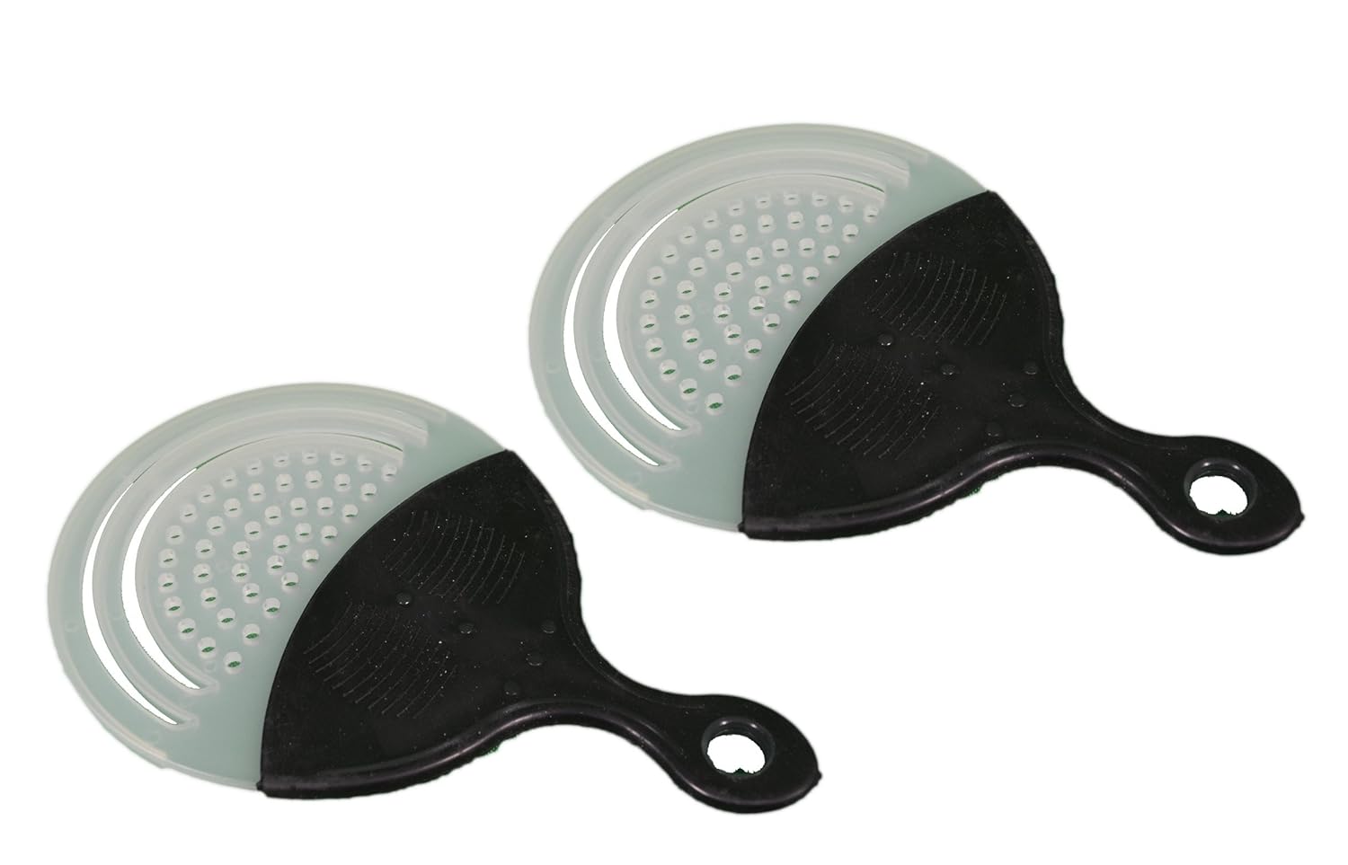 2 Clear Plastic Can Strainer With Grip Handle Drain Tuna Veggies is best for youApprox 4.25' Made of plastic Rubber grip handle Drains water from tune, veggies & other canned goods while keeping hands mess free