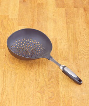 Jumbo Handle Colander/strainer is best for you2-In-1 Jumbo Handle Colander/Strainer is a handy addition to your collection of kitchen utensils. It allows you to scoop and drain food straight from the oven or pot with just one movement. Use it for hot or cold pasta, dumplings, fruit, veggies and more. Hang it near the stove by the hole in the stainless steel handle. Heat resistant to 225°F. 15' x 7-1/4' x 2-1/2'. Nylon. Top-rack dishwasher safe.