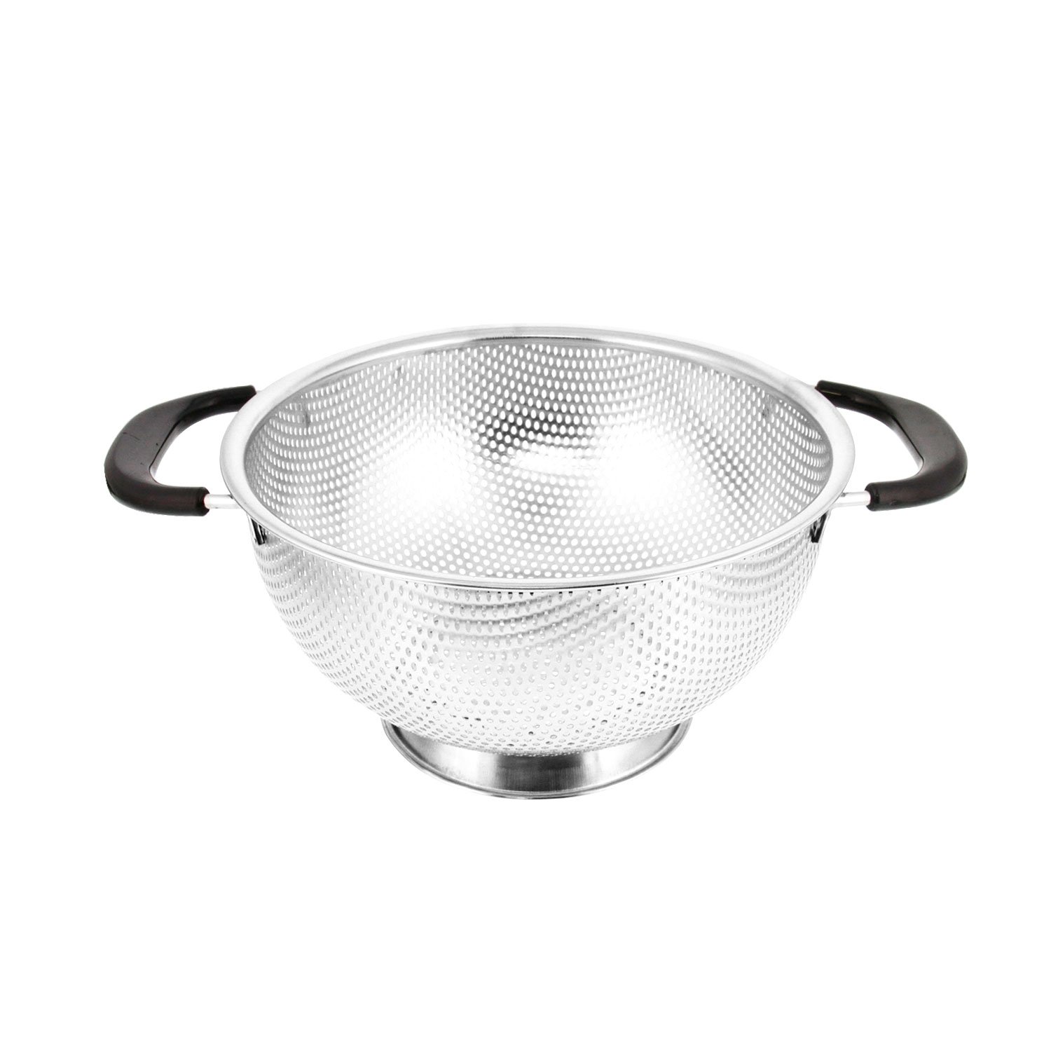 U.S. Kitchen Supply 3 Quart 9" Stainless Steel Micro Perforated Colander Strainer Basket with Coated Heat Resistant Wide Handles - Bowl to Strain, Drain, Rinse, Steam or Cook Vegetables & Pasta is best for youPremium high performance 3 quart 9' diameter stainless steel micro perforated colander net strainer with coated heat resistant wide handles Colander Dimensions: 3 Quart Size: 9' diameter, 4' high and is 12' from handle to handle Ideal for most straining, sieving, sifting, filtering, rinsing, steaming and cooking tasks. Cooking should be Fast, Easy and Enjoyable! Our colander strainer basket can rest in your pot, in the sink or on a counter top, so that your hands are free and you can focus on other things. Cook faster, easier and with better results, while avoiding the unpleasant messy part of the cooking experience. Dishwasher Safe Dishwasher safe colander that can also be cleaned easily with soap, water and a dish brush. Makes a Great Gift A nice gift item for an inspiring young chef or any household without a perforated colander strainer basket, as it's a necessary cooking essential. About U.S. Kitchen Supply U.S. Kitchen Supply offers a full collection of value priced professional grade kitchen ware. A premium line of high performing cookware, bakeware and other kitchen essentials. Our products are manufactured to the highest standards using durable top quality materials. They feature innovative ergonomic designs to simplify their use. We offer a 100% lifetime satisfaction guarantee, so you can purchase with the assurance that our quality products are built to last.
