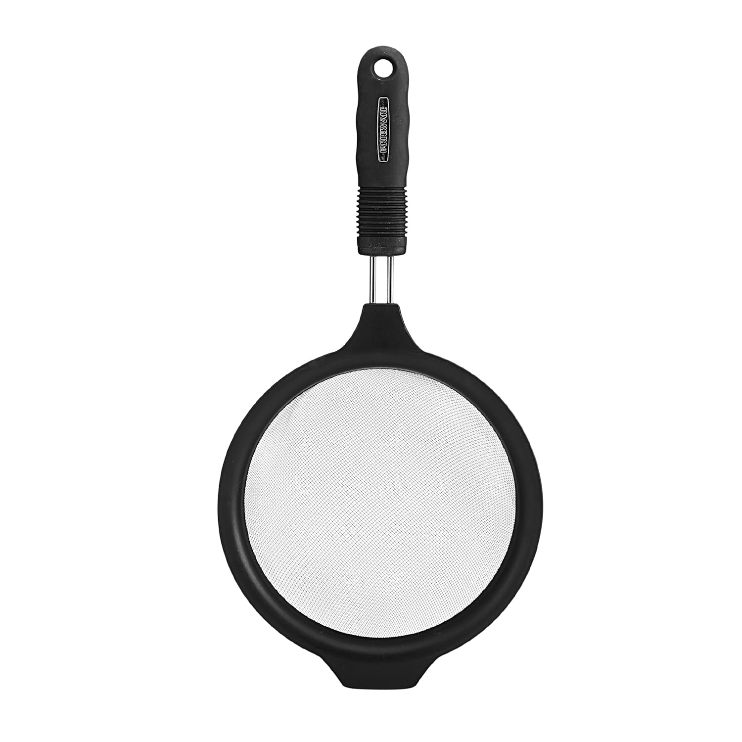 Farberware Soft Grip Strainer, 7", Black is best for youThis Farberware Classic Strainer is ideal for straining fruits, vegetables, pasta and more. The strainer's wire mesh is constructed of strong, rust-resistant stainless steel. The strainer boasts a comfortable, ergonomic handle for added control. The strainer's frame is formed from durable plastic. The strainer features a loop at the end of its handle, allowing it to be hung for easy storage. This product is completely dishwasher safe for easy cleanup.