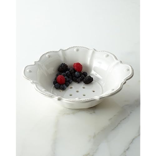 Juliska Berry & Thread Whitewash Colander is best for youWith edges ruffled, scalloped, and detailed with a fine cord texture, the Berry and Thread Whitewash Colander rinses produce with ease - and can present it at the breakfast table with all the polish of a lace-edged bowl. Beautifully glazed after being crafted from dishwasher-safe, chip-resistant stoneware, this elegant little colander coordinates with any formal or eclectic interior.