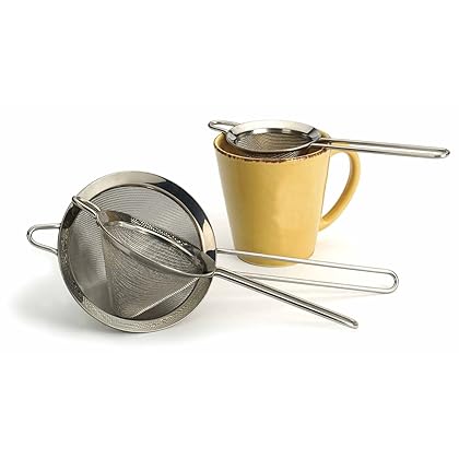 Set of Three Stainless Steel Strainers 3", 3.5" and 4.75" Sizes. By RSVP is best for youStrain your food or tea with ease using these conical strainer from the RSVP Endurance line. Fabricated from stainless steel, they have a sturdy construction and are durable for frequent use. Each strainer has a polished, silver finish that ensures lasting shine. Its mesh, conical design is great for straining gravy and sauce, as well as juice and tea. They also comes with a long, easy hold handle for a comfortable grip. This strainer is an essential tool for any kitchen. - Two year no-hassle return replace warranty.